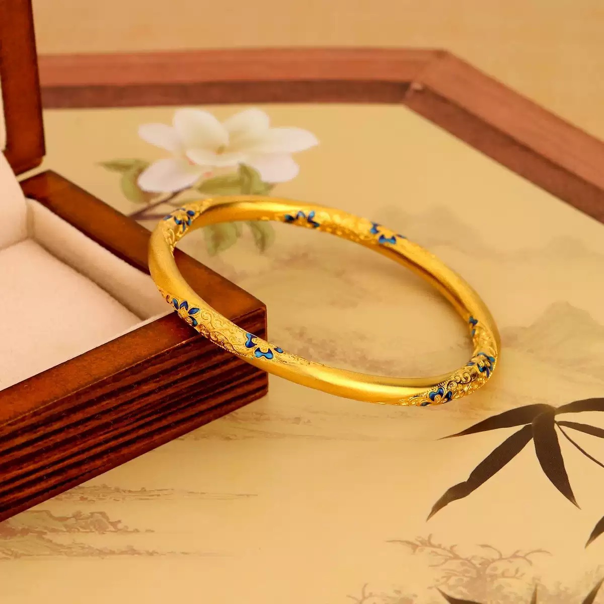 铜合金手镯 珐琅繁花似锦手镯新中式花丝滴胶设计气质高级感手饰