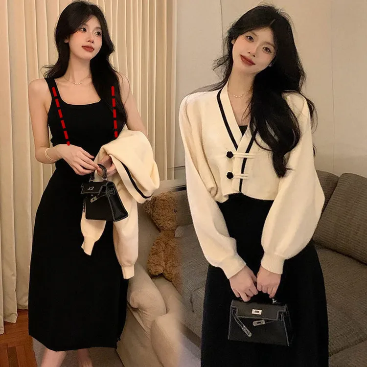 辣妈咪哺乳套装秋冬款背心连衣裙+毛衣产后期外出穿搭上班喂奶服