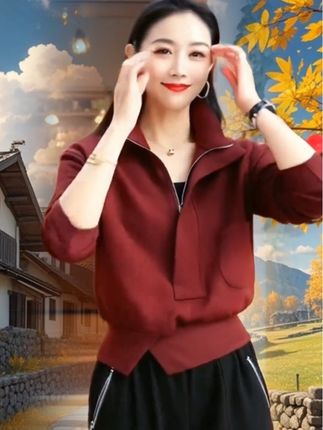 领长袖卫衣。 安可拉红立领长袖卫衣女2025早秋新款轻奢高端小众设计感大码上衣#时尚女装#秋冬新款。#面料柔软舒适。#谁穿谁好看。#强烈推@抖音小助手。